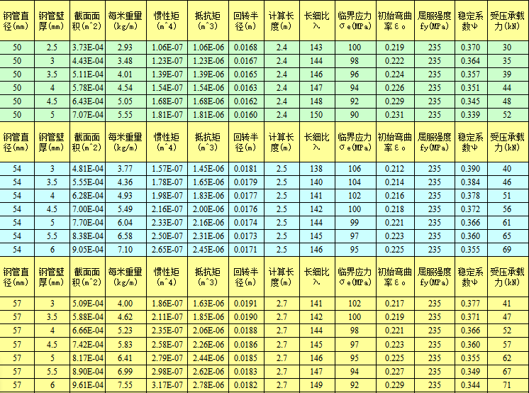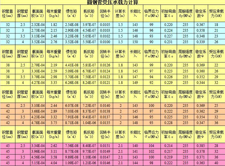 圆钢方钢管受压承载力计算表