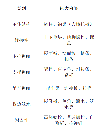 雨蓬系统:悬挑型钢梁、彩瓦注意:普通安装螺栓费用已包含在包干单价中,高强螺栓需单独计量并按主材计价。