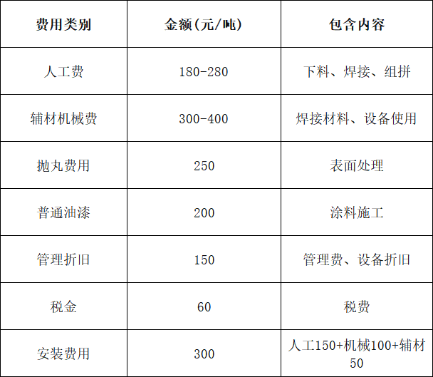 加工安装费用构成