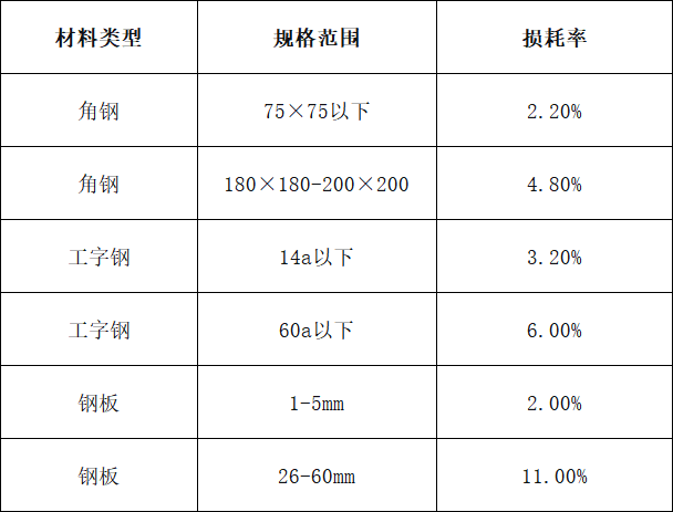 规范损耗率参考