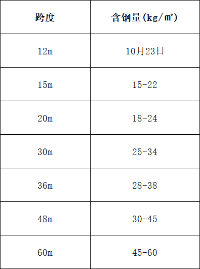 大型钢结构经验值:25-30㎡/吨