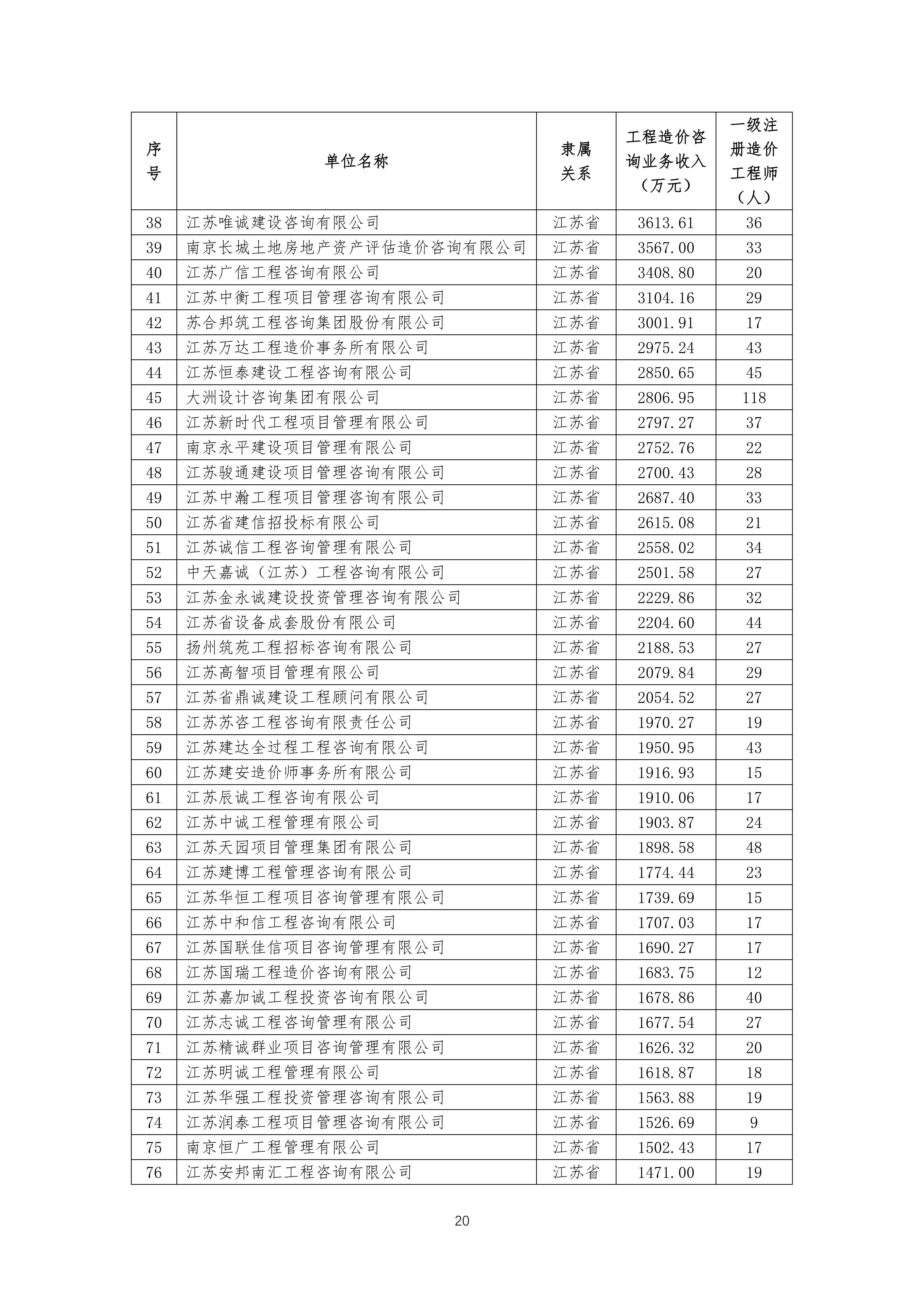 江苏省2024年度工程造价公司收入排名