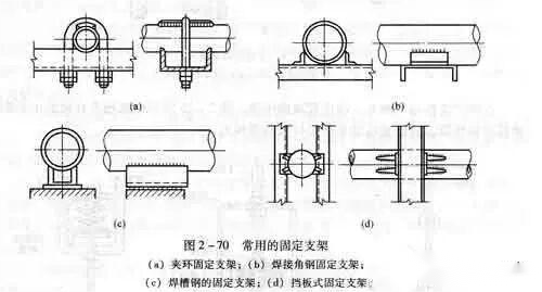 固定支架是将管道的某一部分固定在一点,无论在轴向上、径向上都不允许管道发生移动,如下所示。