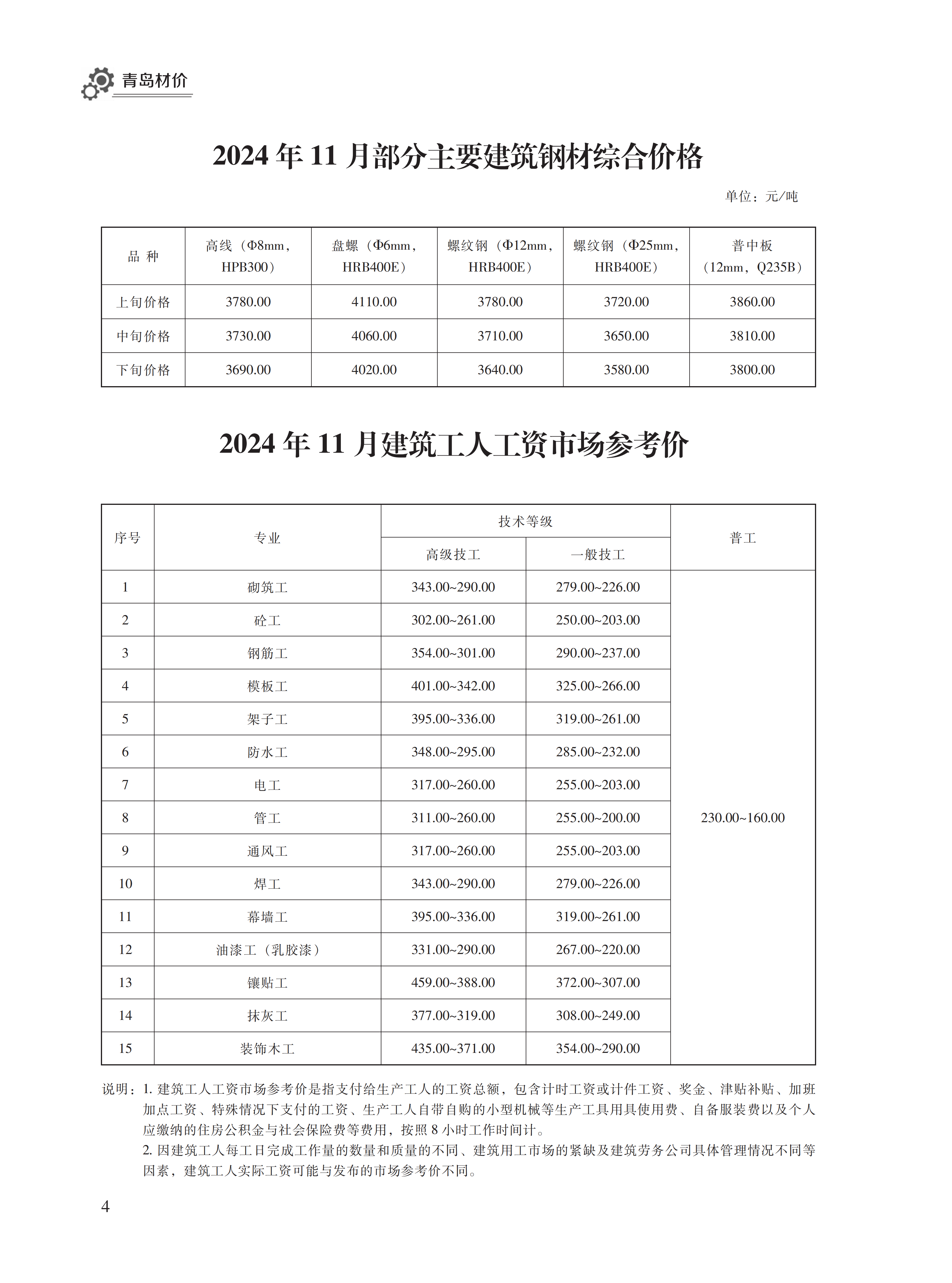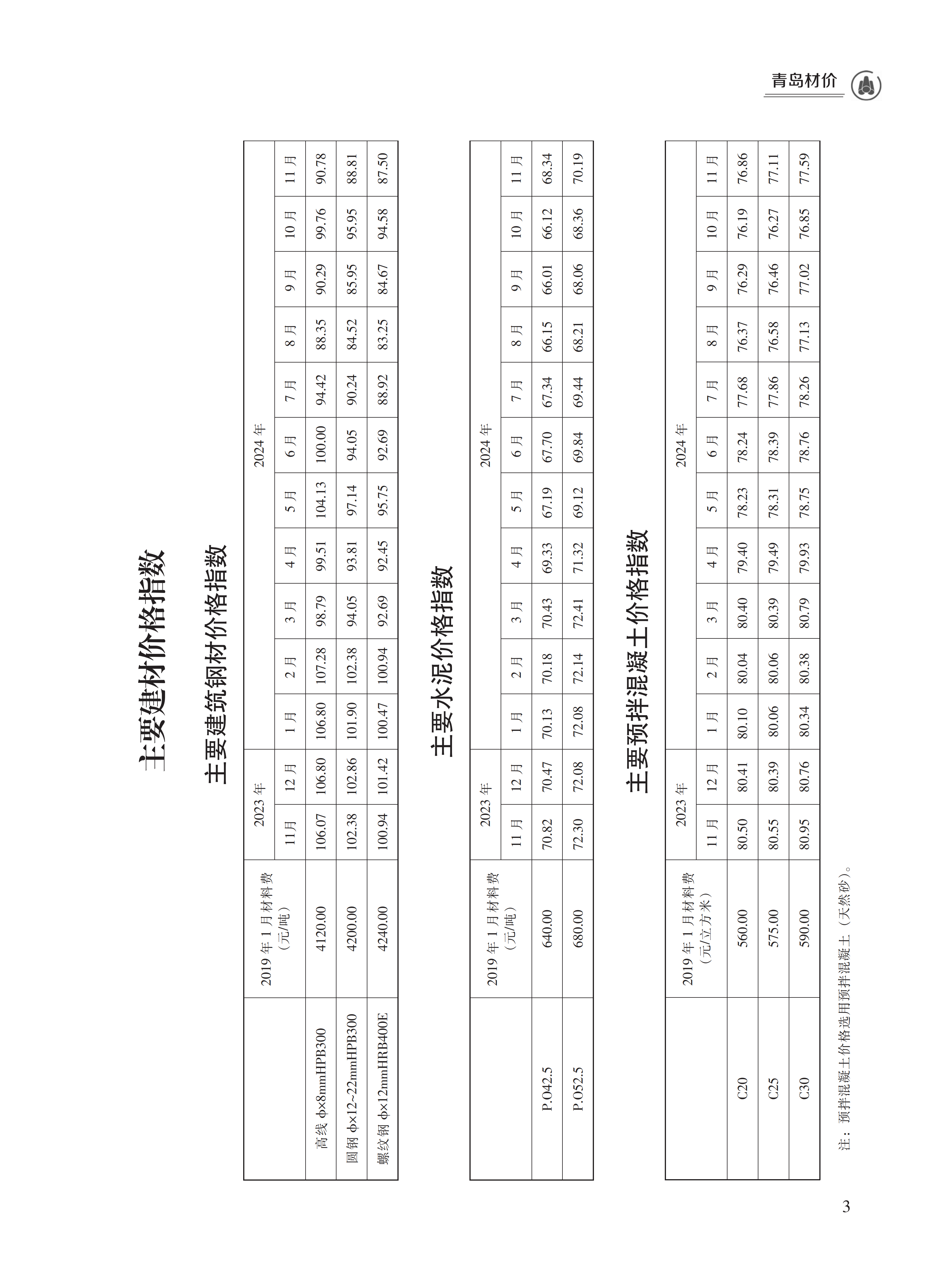 2024年11月青岛市建设工程材料价格及造价指数(点击下载文件)