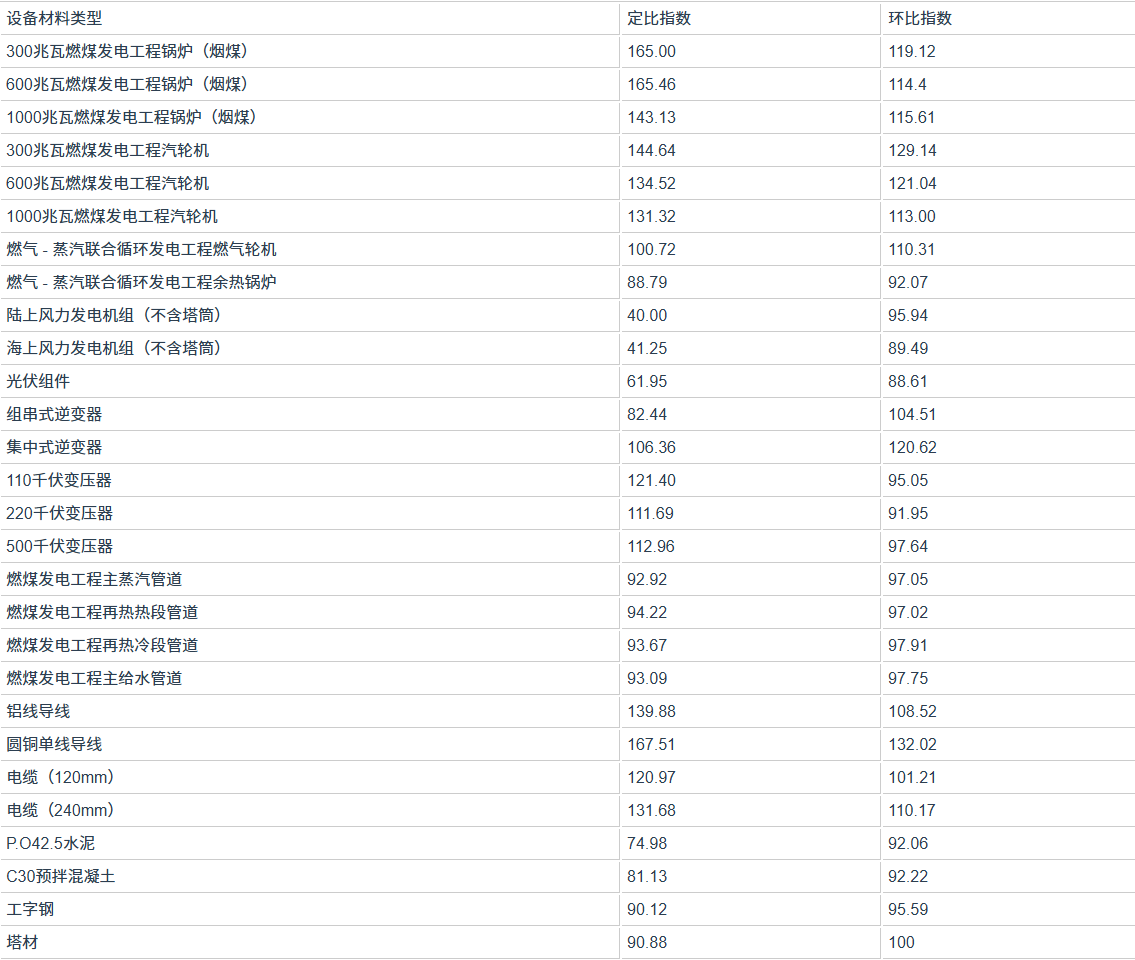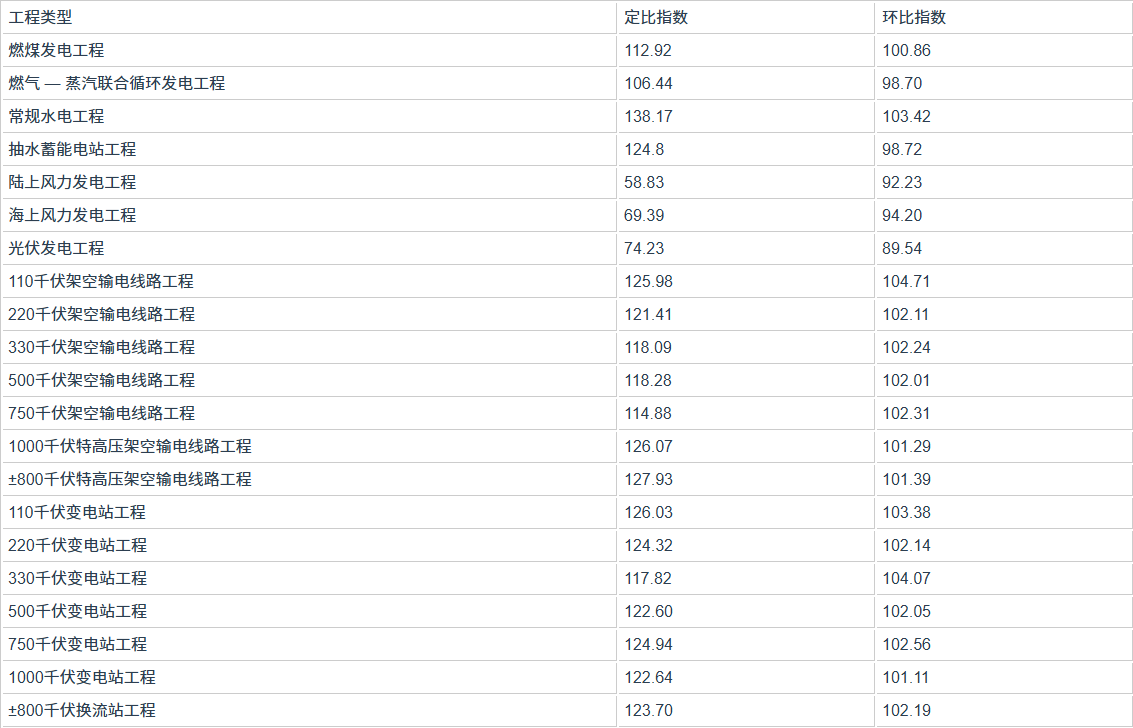 该指数由电力工程单位造价指数、电力工程主要设备材料价格指数和电力工程造价预测指数三部分构成,内容涵盖电源工程(火电工程、水电工程、风力发电工程和光伏发电工程)、电网工程(架空输电线路工程、电缆线路工程、变电站工程和换流站工程)等各类电力建设工程。