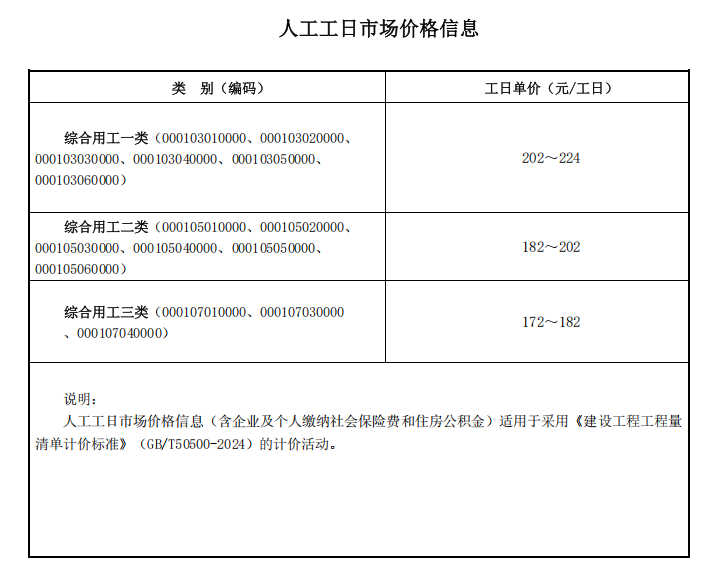 1. 人工工日市场价格信息(含企业及个人缴纳社会保险费和住房公积金)