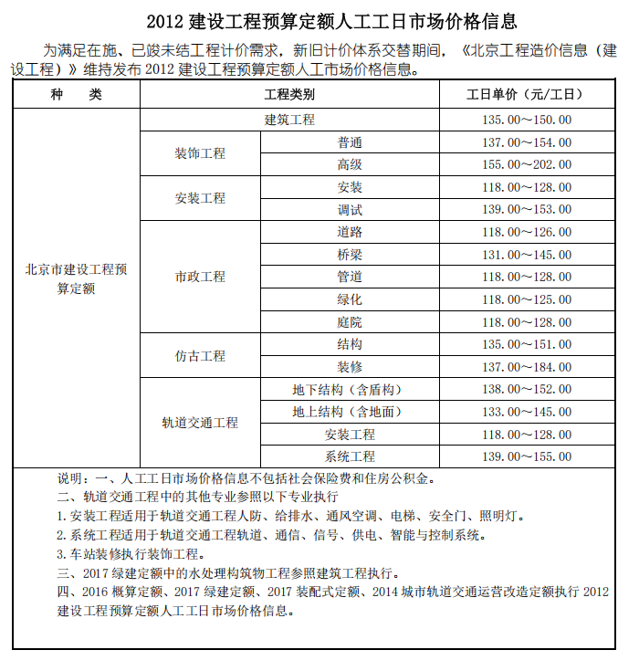 3. 2012 建设工程预算定额人工工日市场价格信息