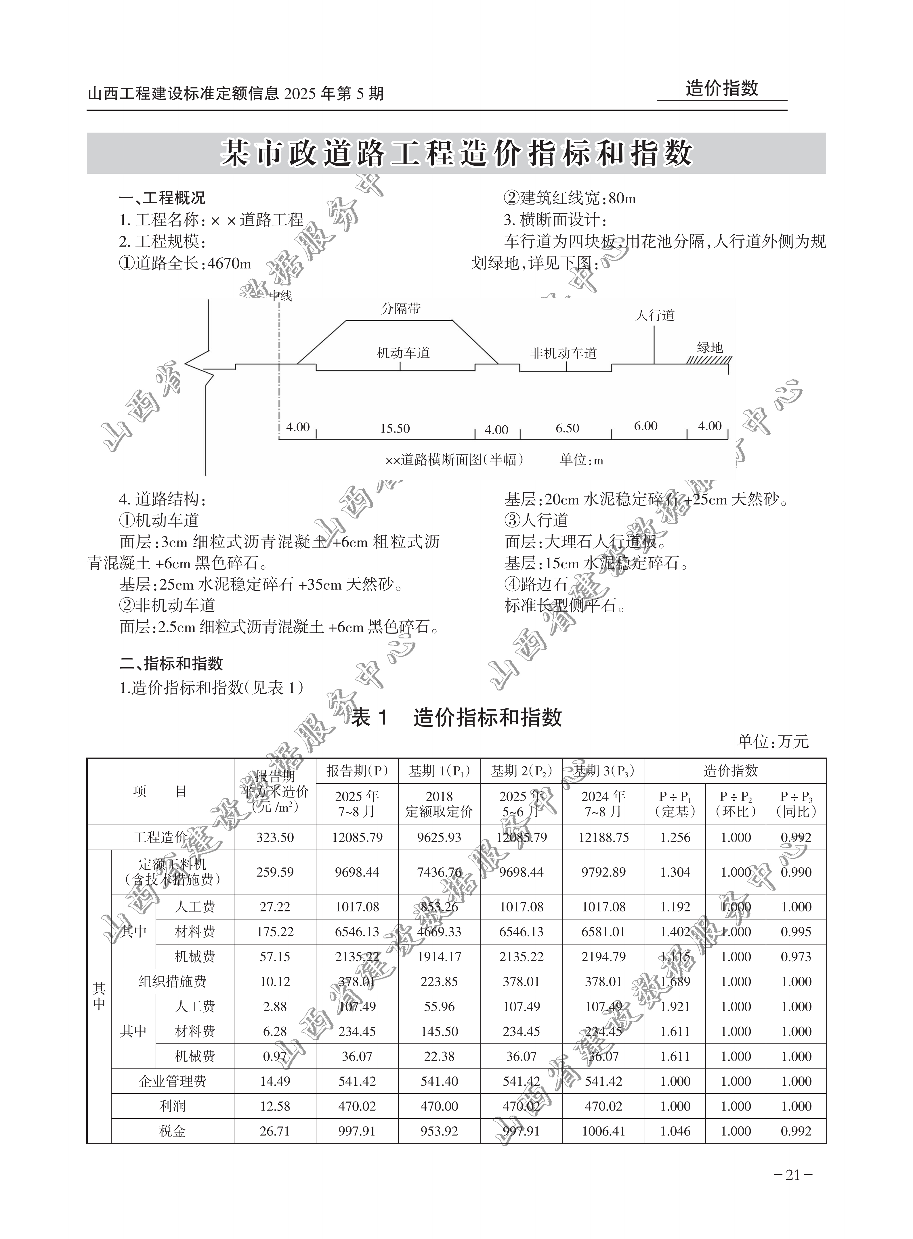 山西省 某市政道路工程造价指标和指数(2025年第5期)(点击下载文件)