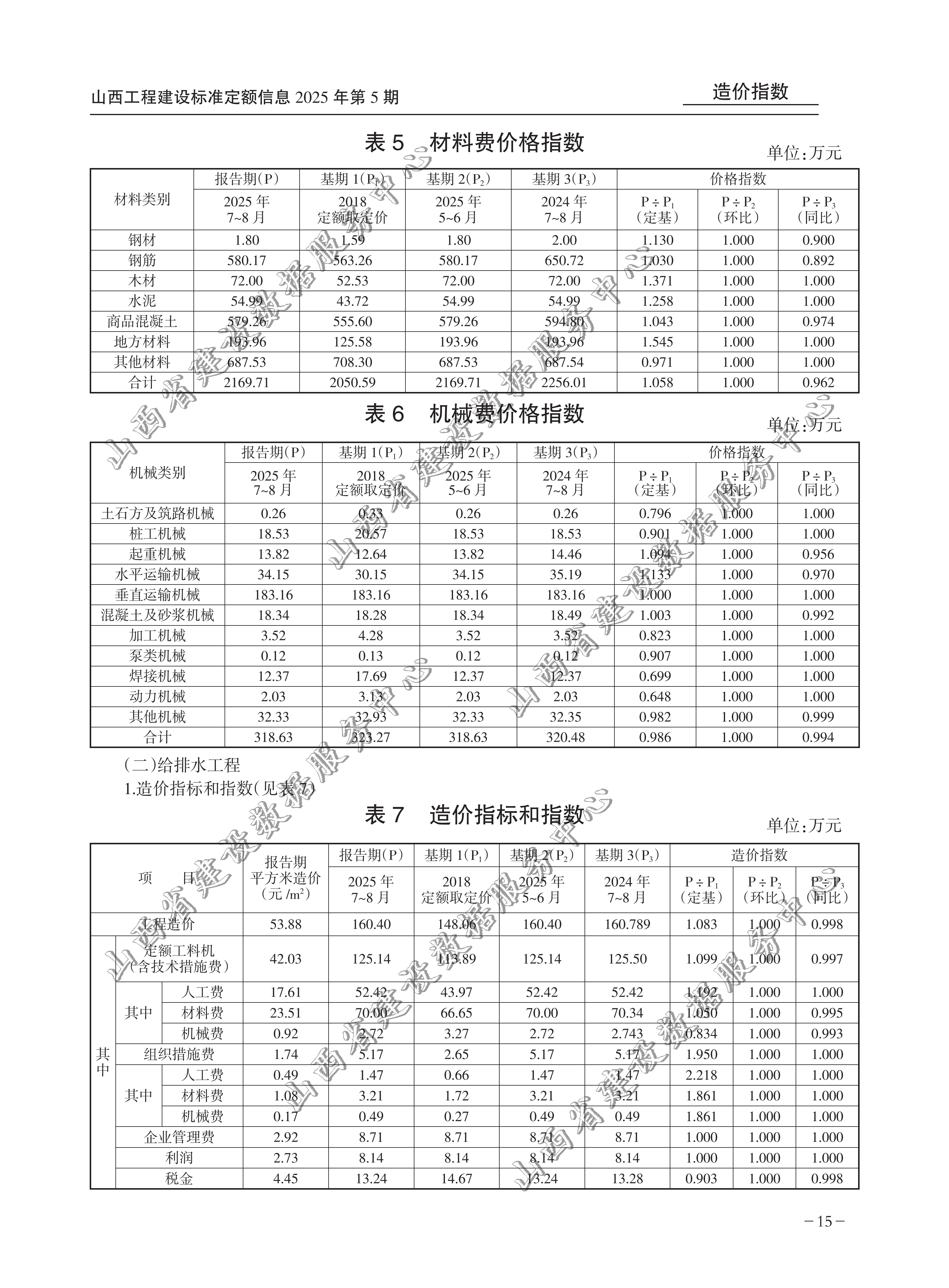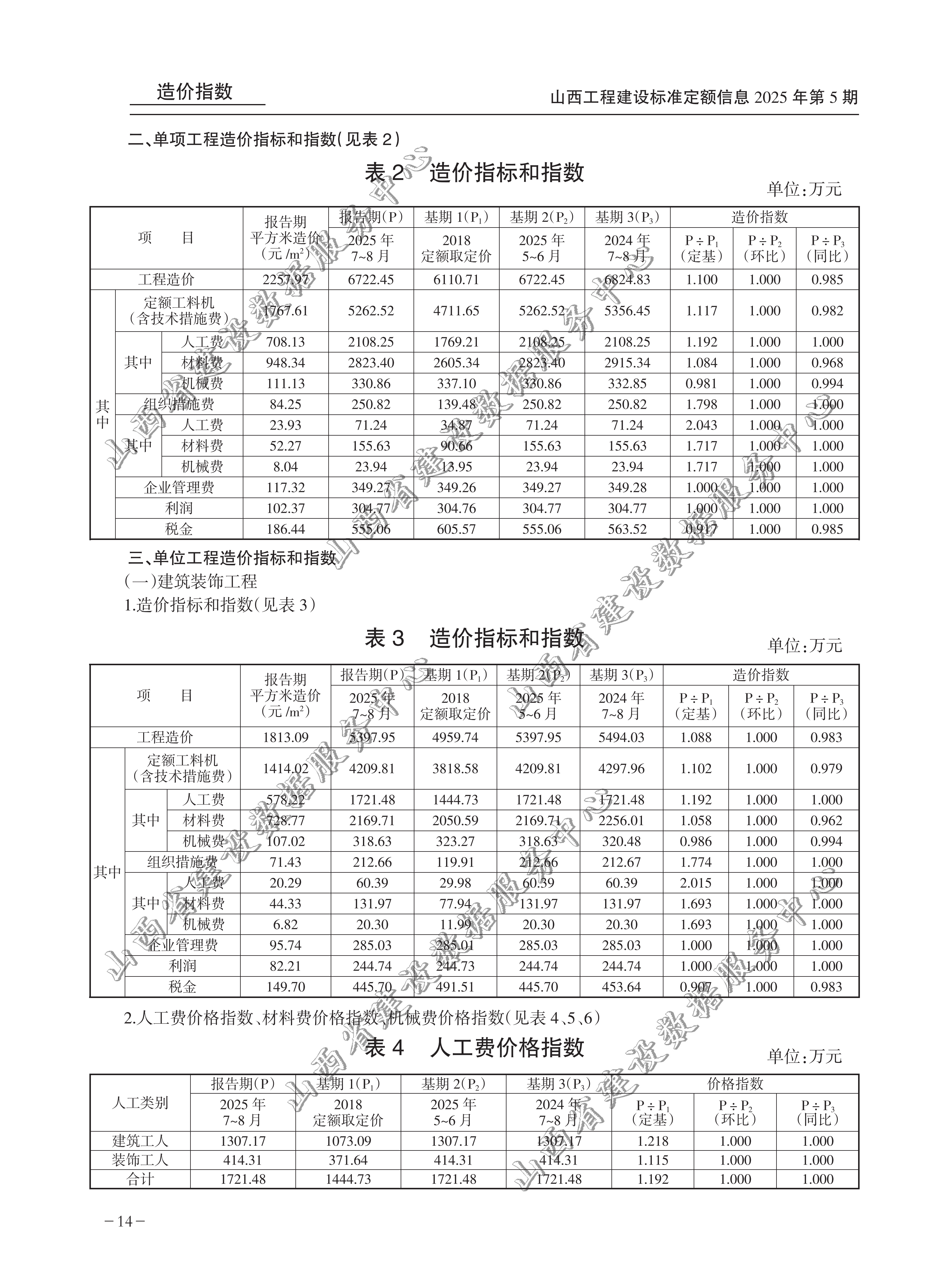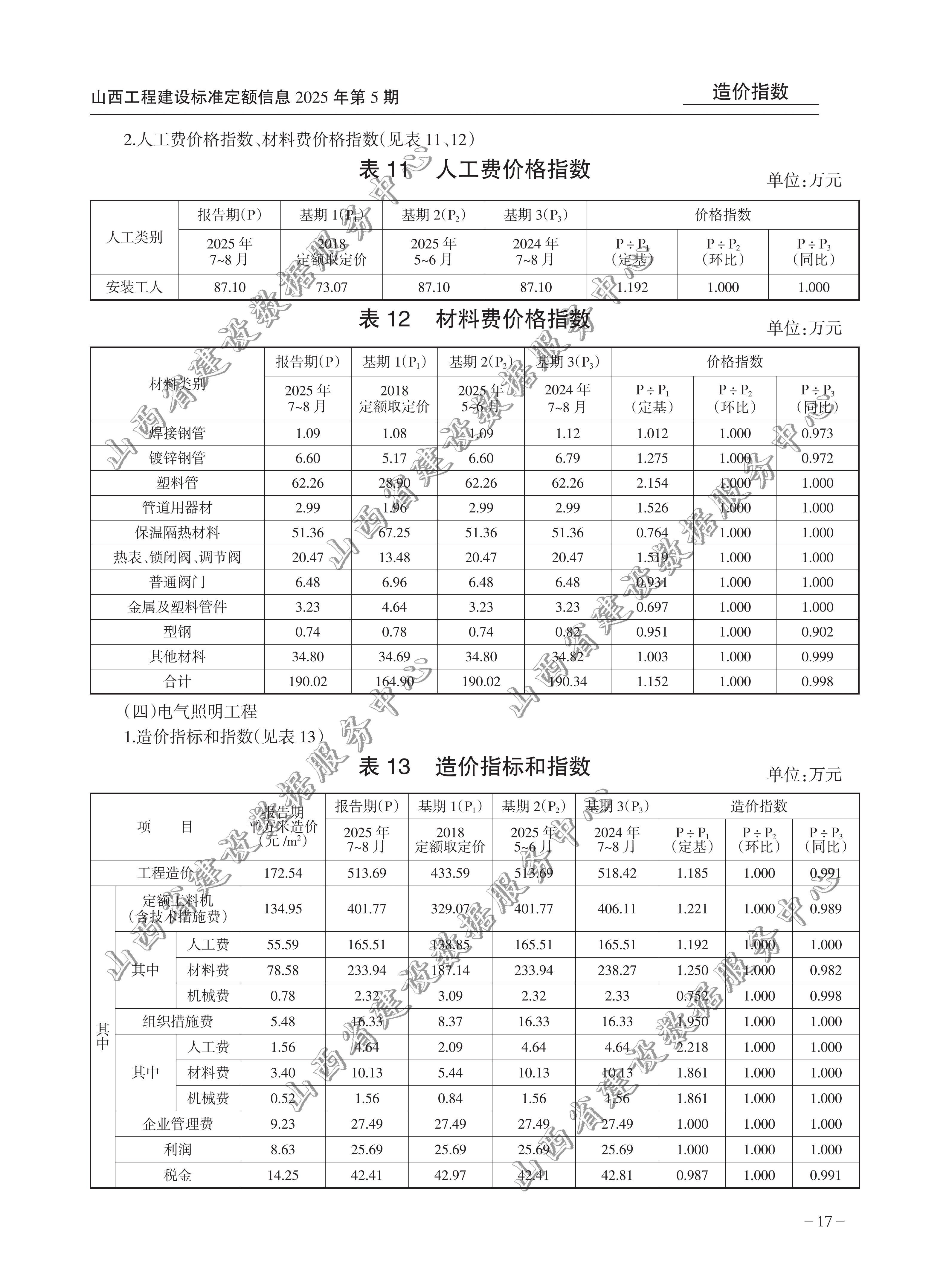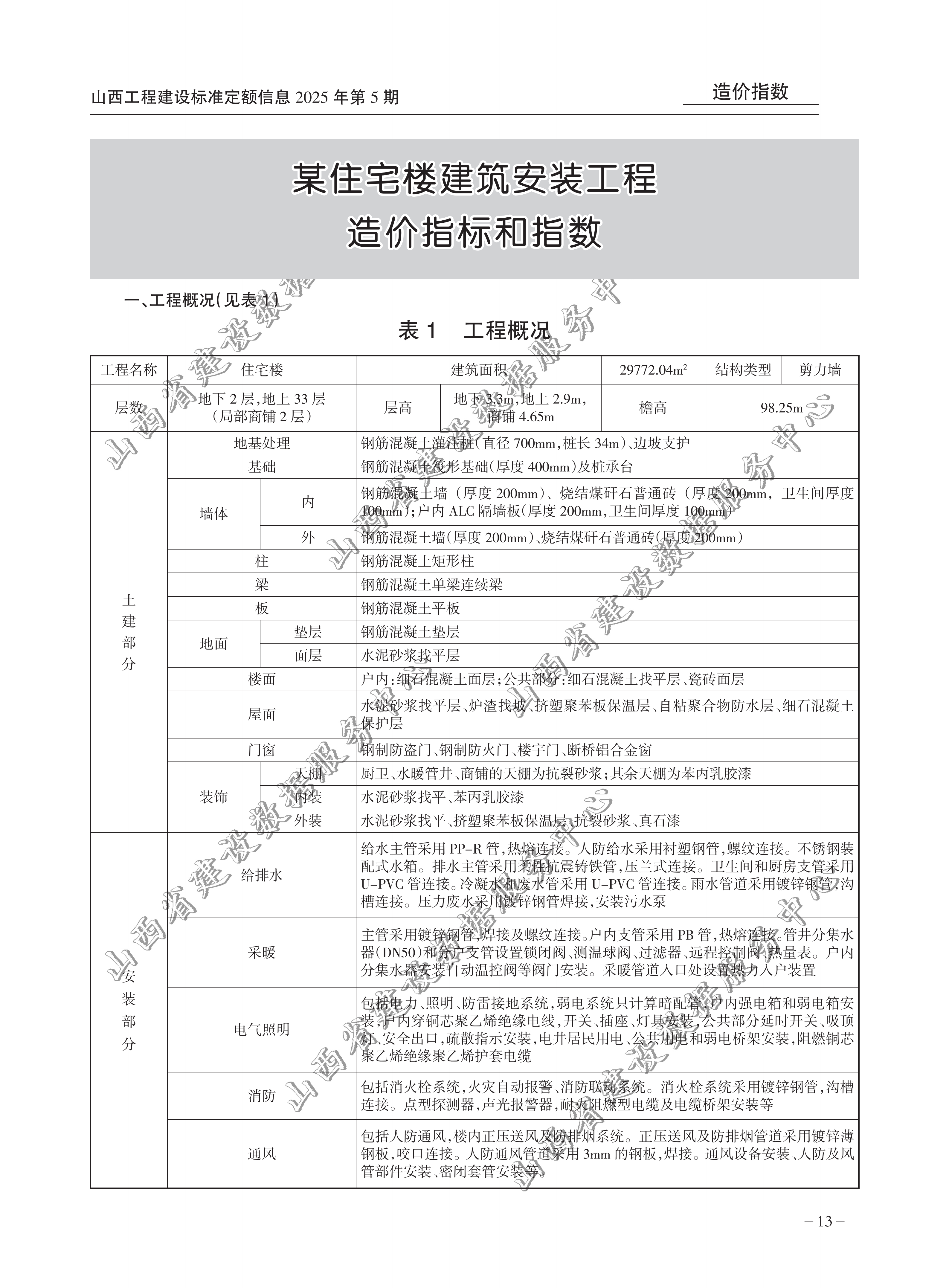 山西省某住宅楼建筑安装工程造价指标和指数(2025年第5期)(点击下载文件)