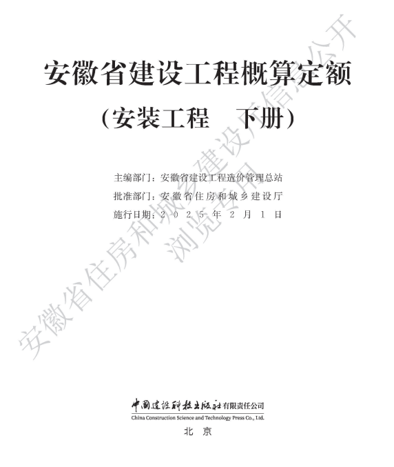 2025年安徽省建设工程概算定额-安装工程下册(点击下载文件)