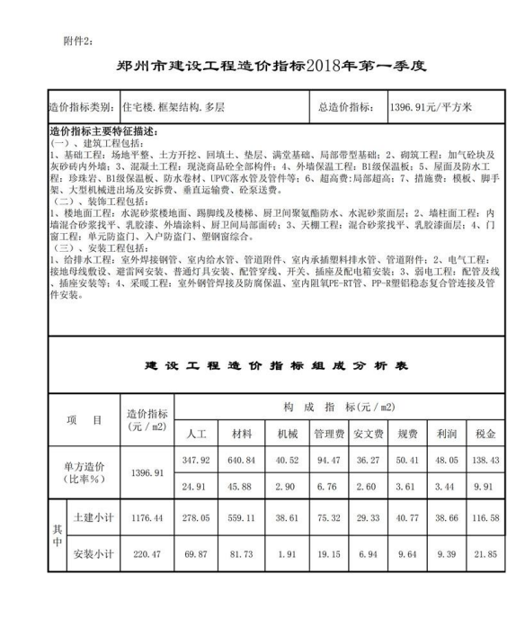 附件:2018年第一季度郑州市建设工程造价指标