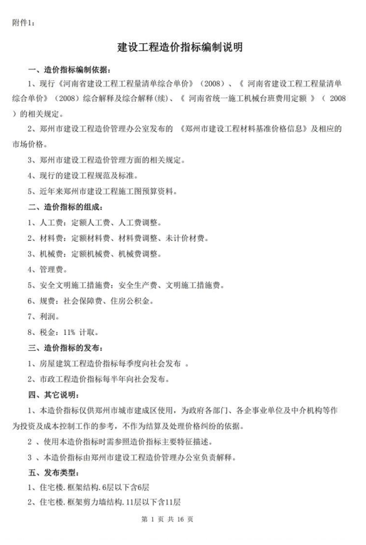 郑州市 建设工程造价指标 2018年第一季度(点击下载文件)