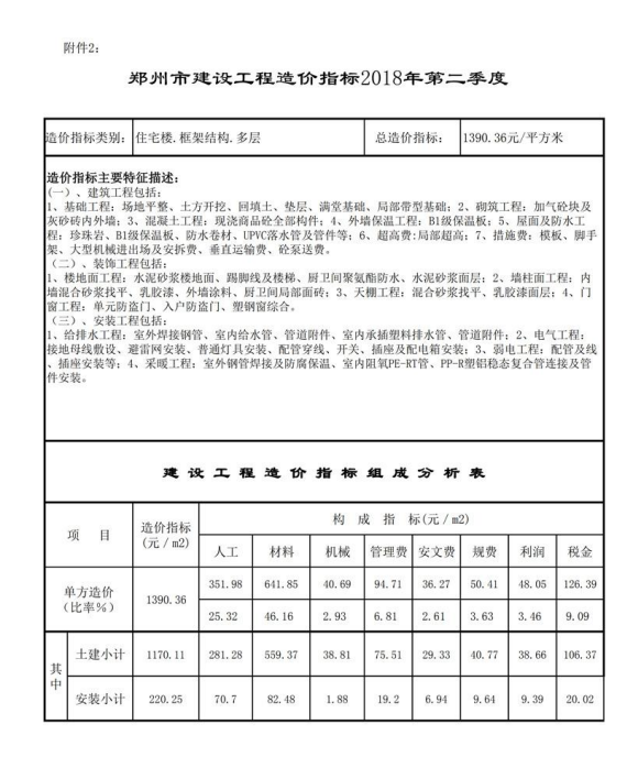 关于发布2018年第2季度郑州市建设工程造价指标的通知