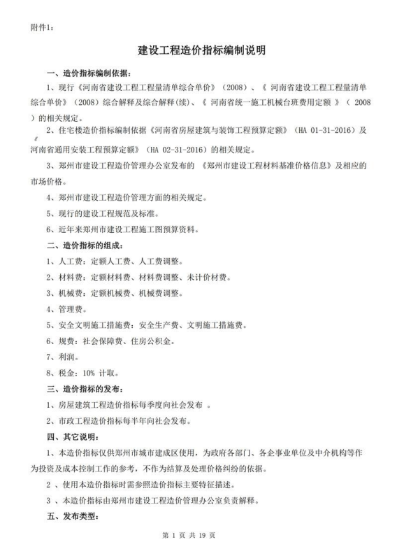 关于发布2018年第4季度郑州市建设工程造价指标的通知