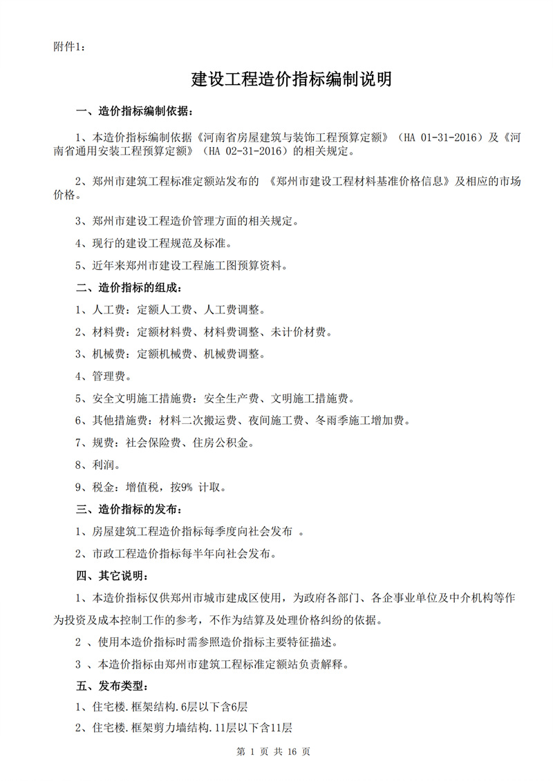 关于发布2019年第4季度郑州市建设工程造价指标的通知