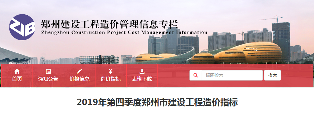 郑州市 建设工程造价指标 2019年第四季度(点击下载文件)