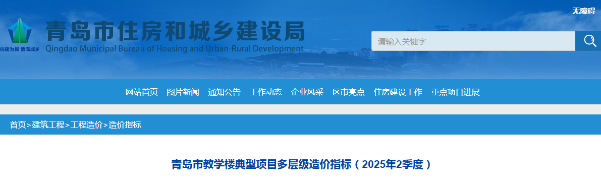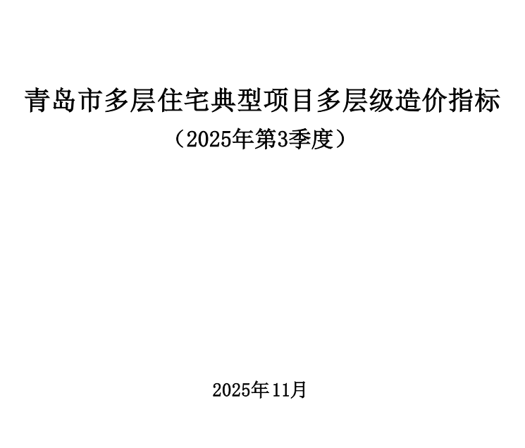 青岛市多层住宅典型项目多层级造价指标(2025年3季度)(点击下载文件)