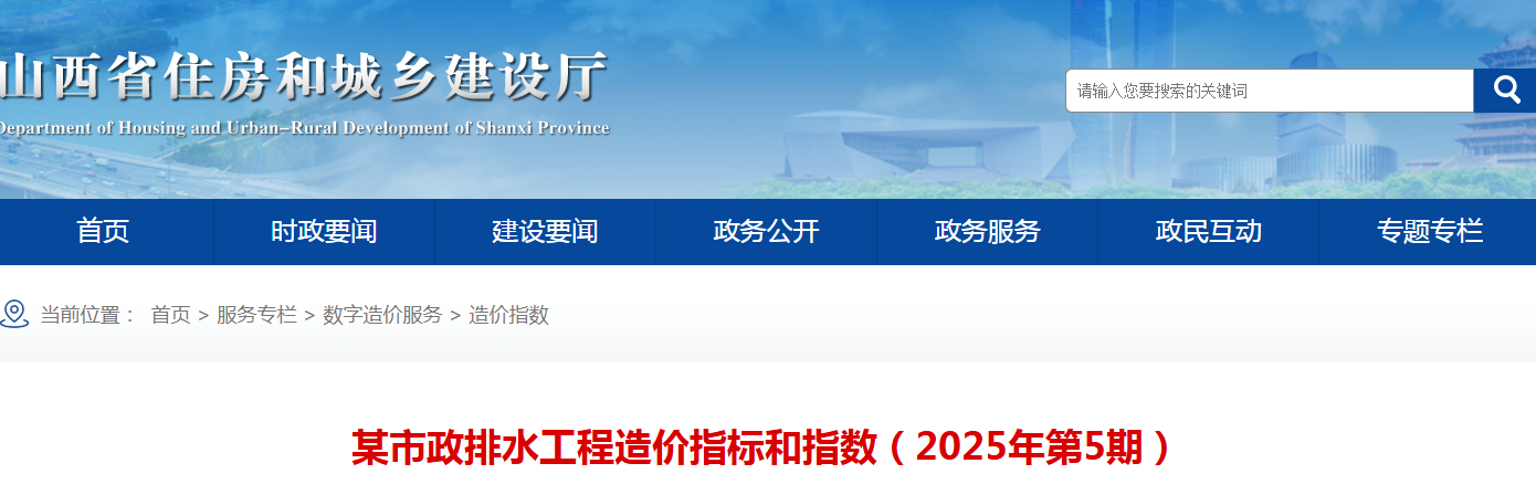 山西省某市政排水工程造价指标和指数(2025年第5期)点击下载文件
