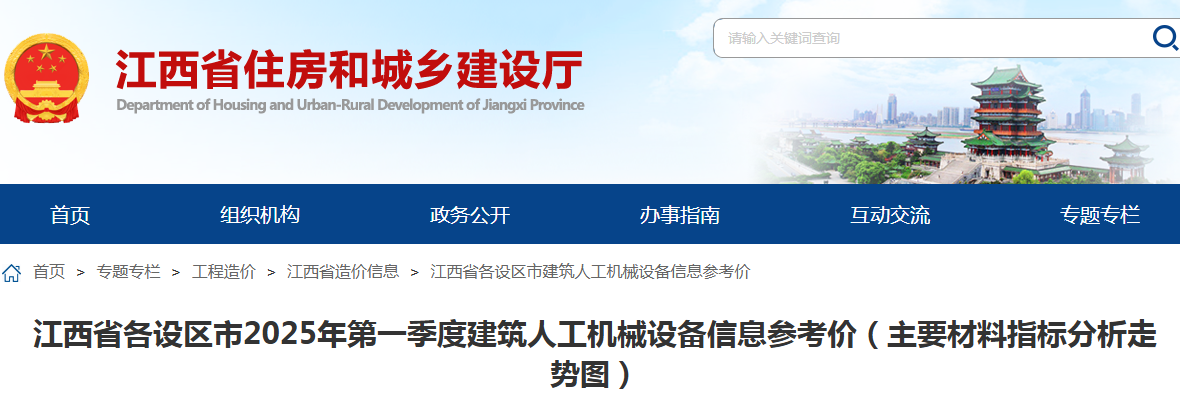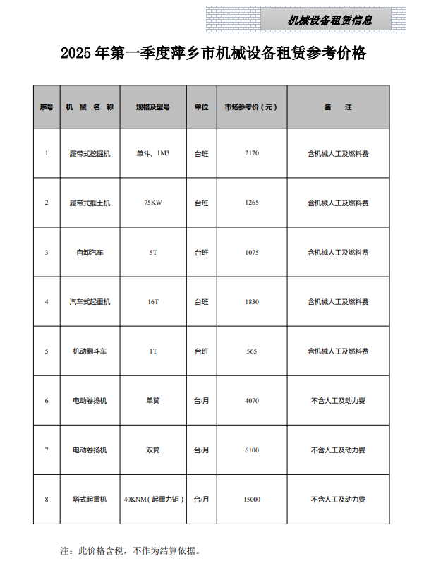 江西省各设区市2025年第一季度建筑人工机械设备信息参考价(点击下载文件)