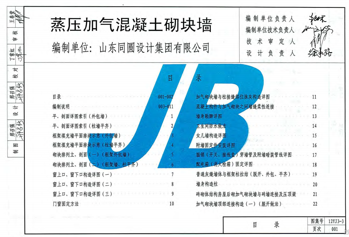 12YJ3-3 蒸压加气混凝土砌块墙 (点击下载文件)