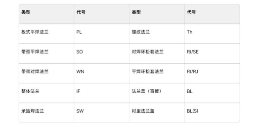 为便于快速查阅与应用,现将主流法兰类型、对应代号及常用参数整理如下,供工程参考使用。