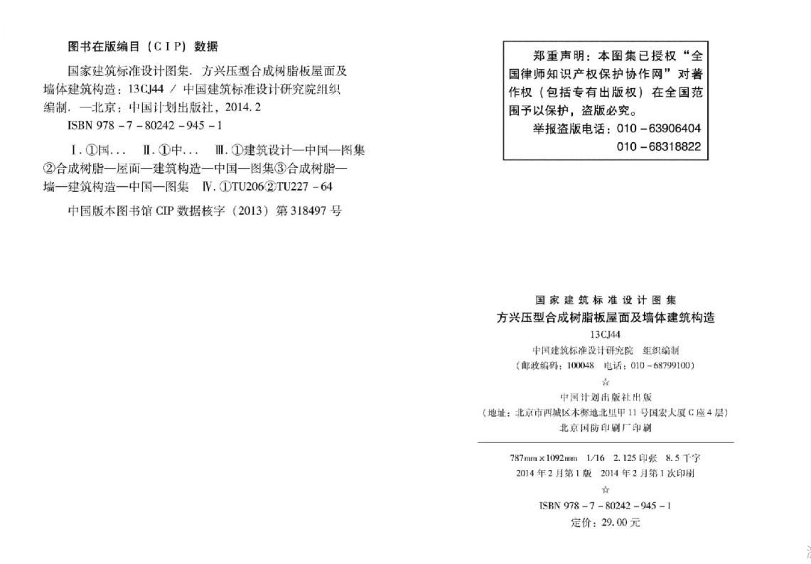 13CJ44方兴压型合成树脂板屋面及墙体建筑构造参考图集(点击下载文件)