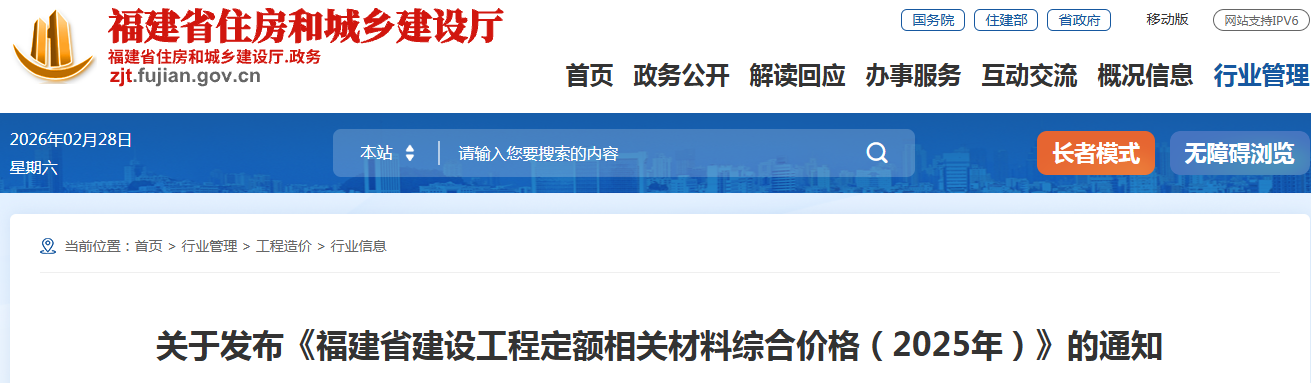 关于发布《福建省建设工程定额相关材料综合价格(2025年)》的通知