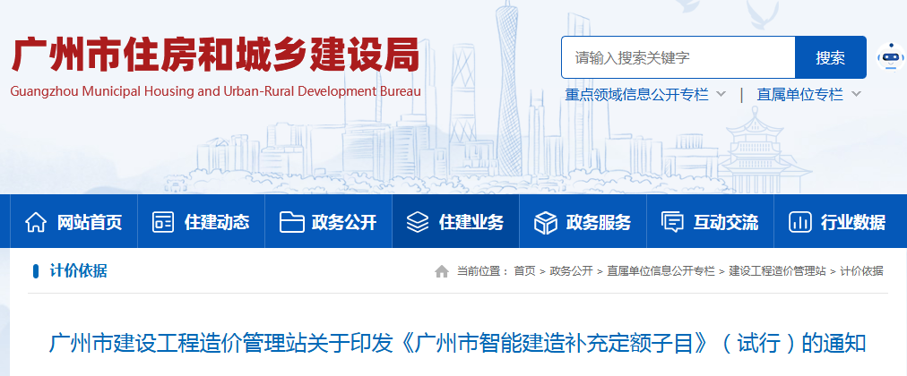广州市建设工程造价管理站关于印发《广州市智能建造补充定额子目》(试行)的通知(点击下载文件)