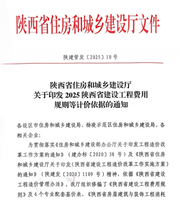 陕西省住房和城乡建设厅关于印发 2025 陕西省建设工程费用规则等计价依据的通知