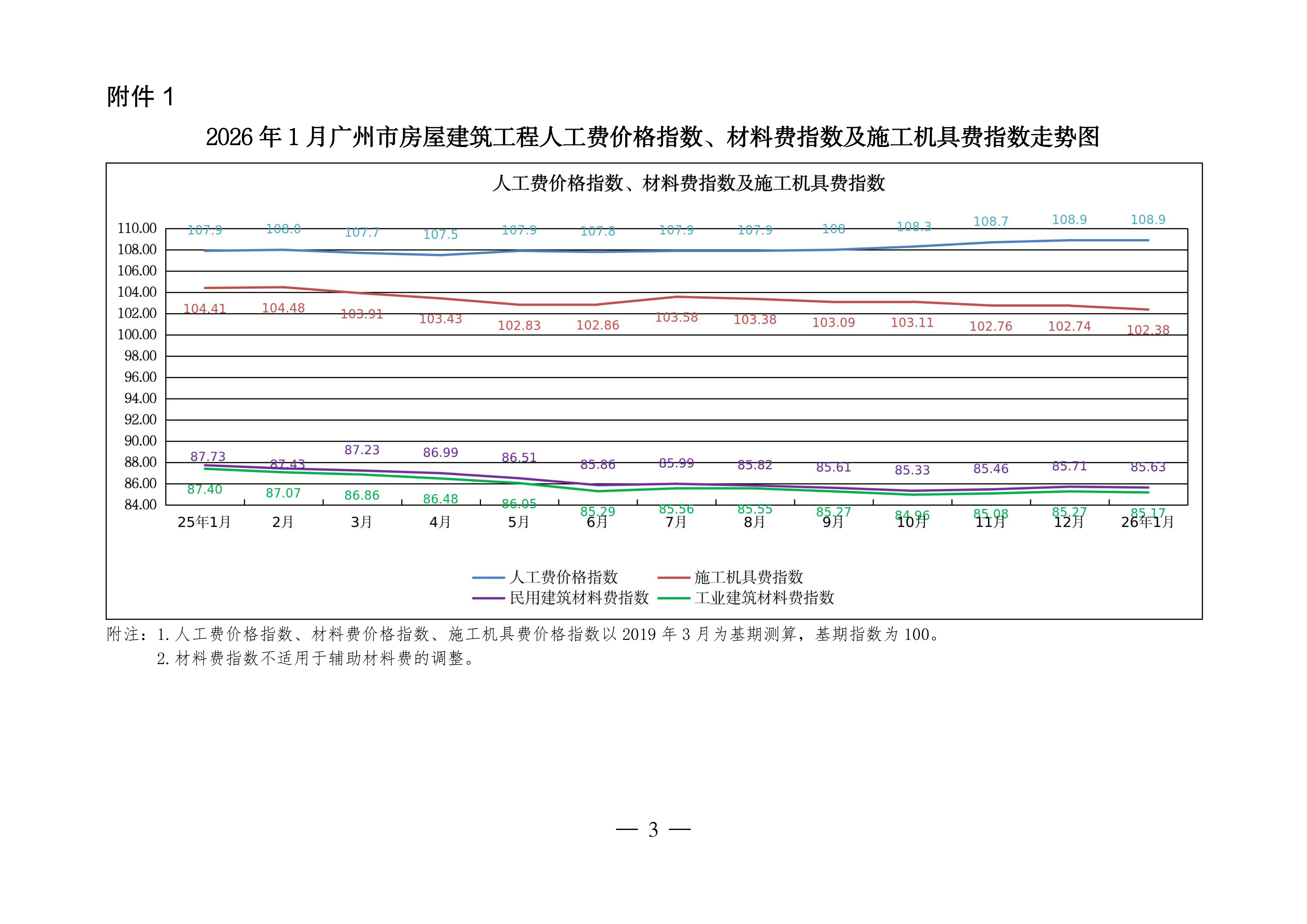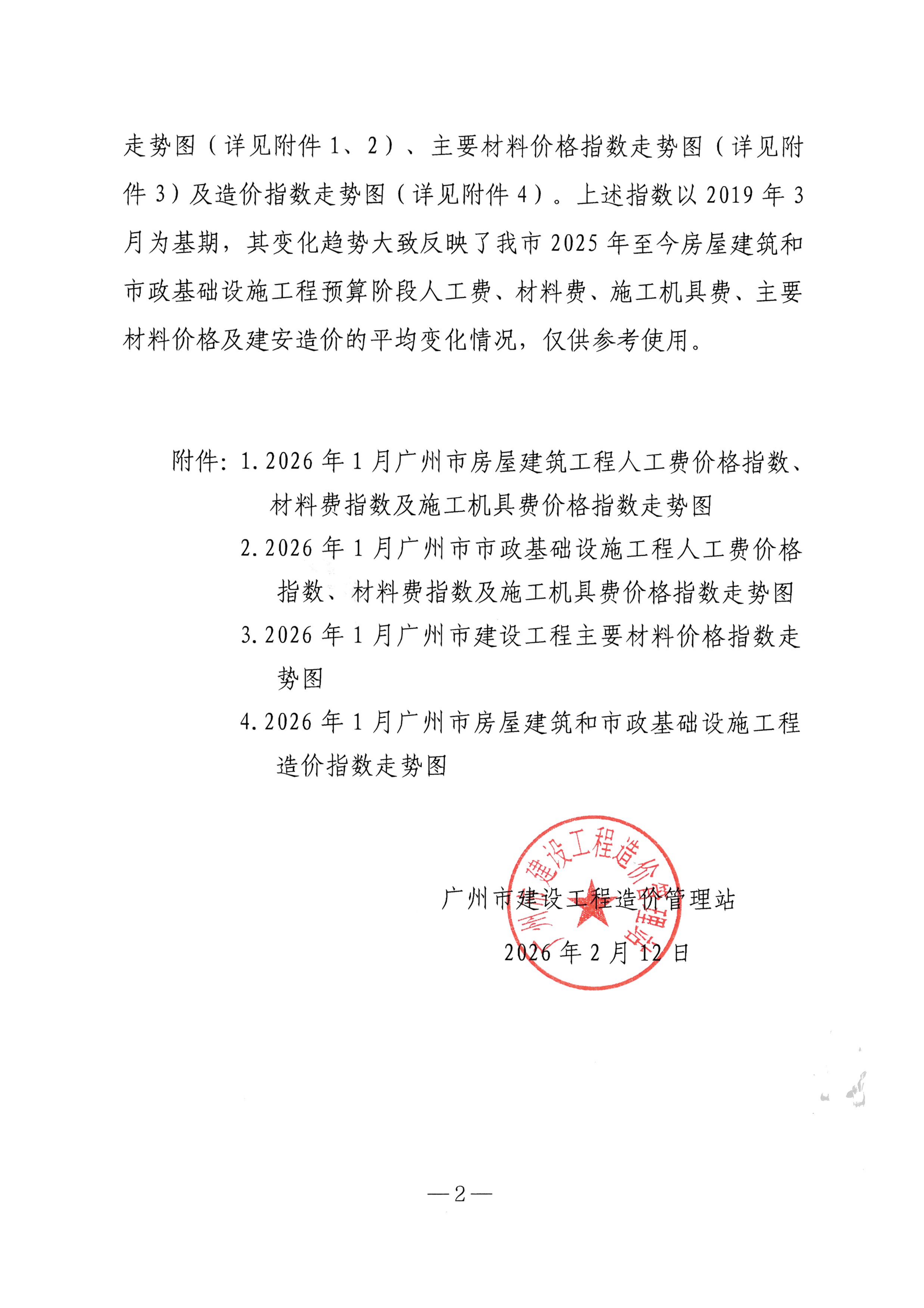 2026年1月广东省房屋建筑等工程价格指数和造价指数的通知