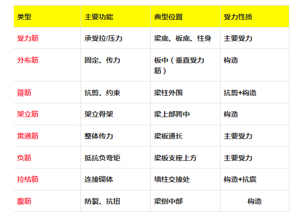 核心作用:架立箍筋,固定梁上部钢筋位置,形成钢筋骨架。