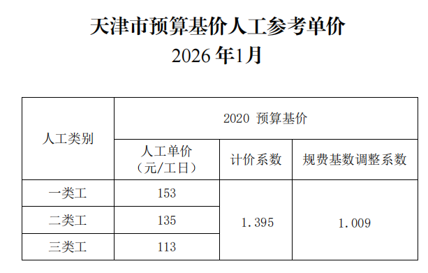 附件:天津市人工参考单价(2026年1月)