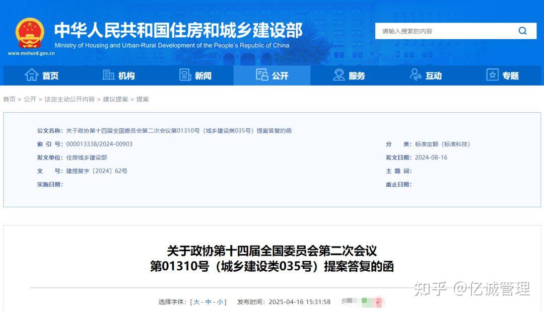 近日,住建部发布关于政协第十四届全国委员会第二次会议第01310号(城乡建设类035号)提案答复的函,对党蓁委员《关于为工程造价管理