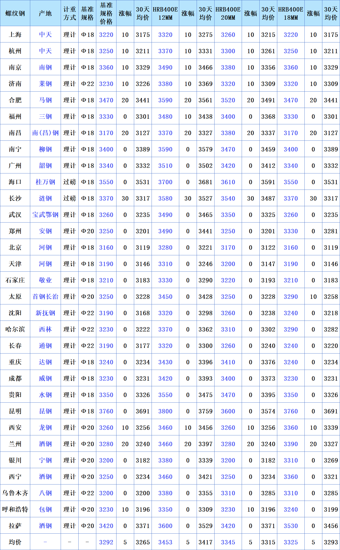 2026年3月18日全国主要城市HRB400E螺纹钢价格分析汇总