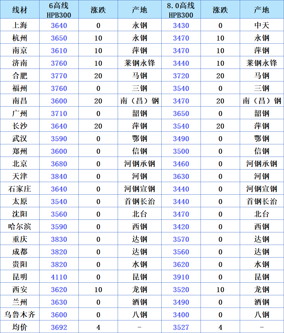 今日全国线材及高线价格整体小幅上涨,区域价差分化明显,西南地区(昆明、重庆)价格高企,华北、东北区域相对平稳,整体市场呈现震荡上行态势。