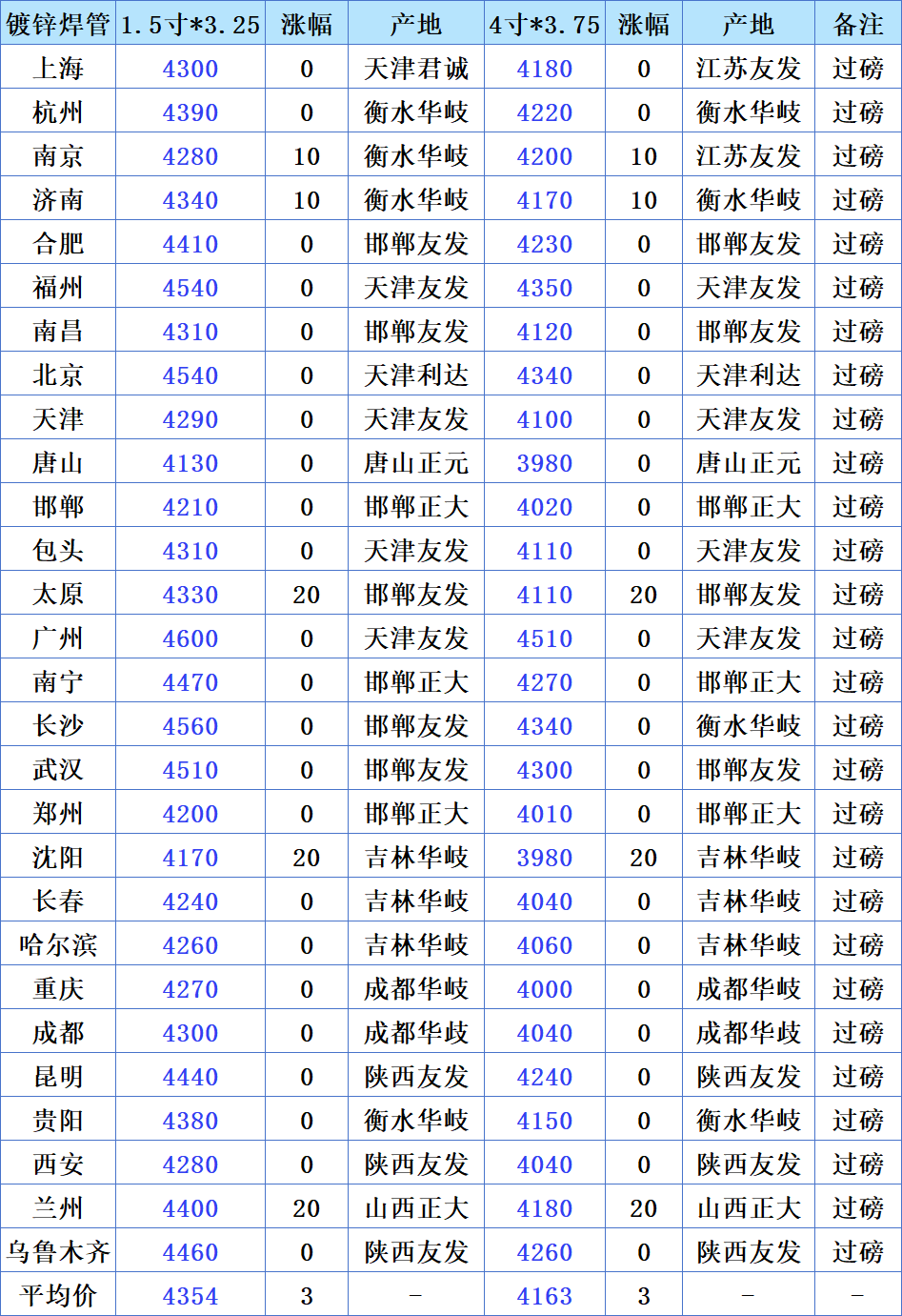 今日镀锌焊管价格整体平稳,华南、西南区域报价相对偏高,华北产地资源供应稳定,整体市场呈现窄幅震荡、稳中有升的运行态势。