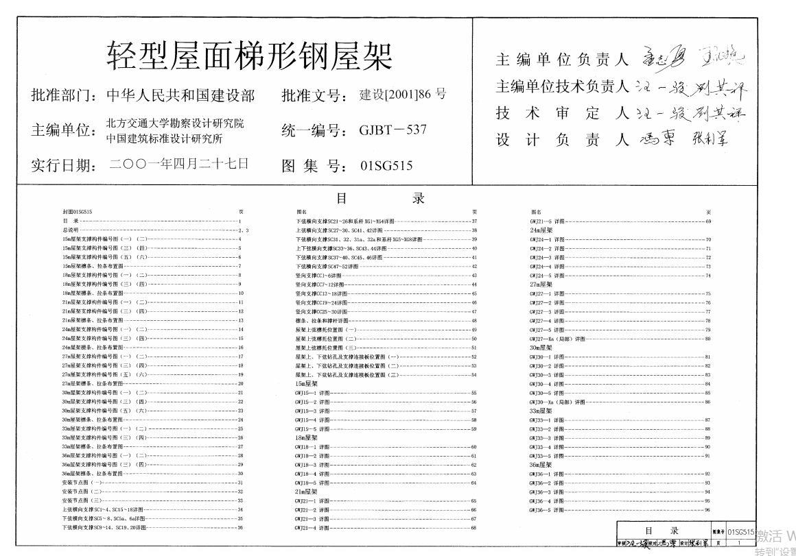 01SG515 轻型屋面梯形钢屋架