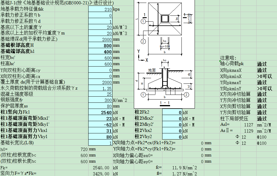 双柱锥形新规范独立基础计算(点击下载文件)