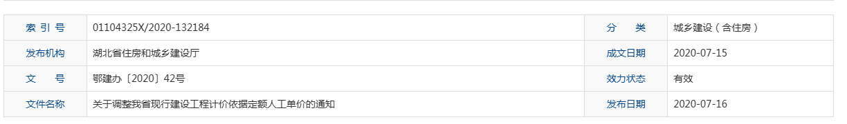关于调整我省现行建设工程计价依据定额人工单价的通知-2020年