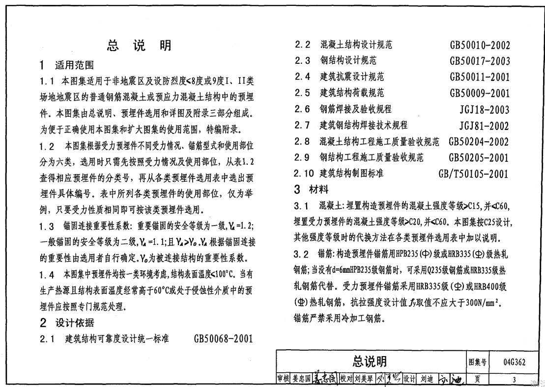 04G362钢筋混凝土结构预埋件(废止)(点击下载文件)