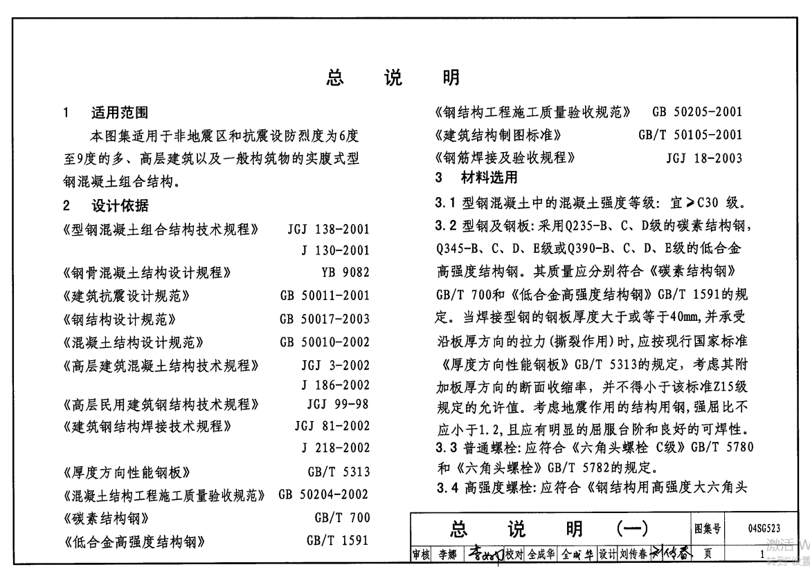 04SG523型钢混凝土组合结构构造(点击下载文件)