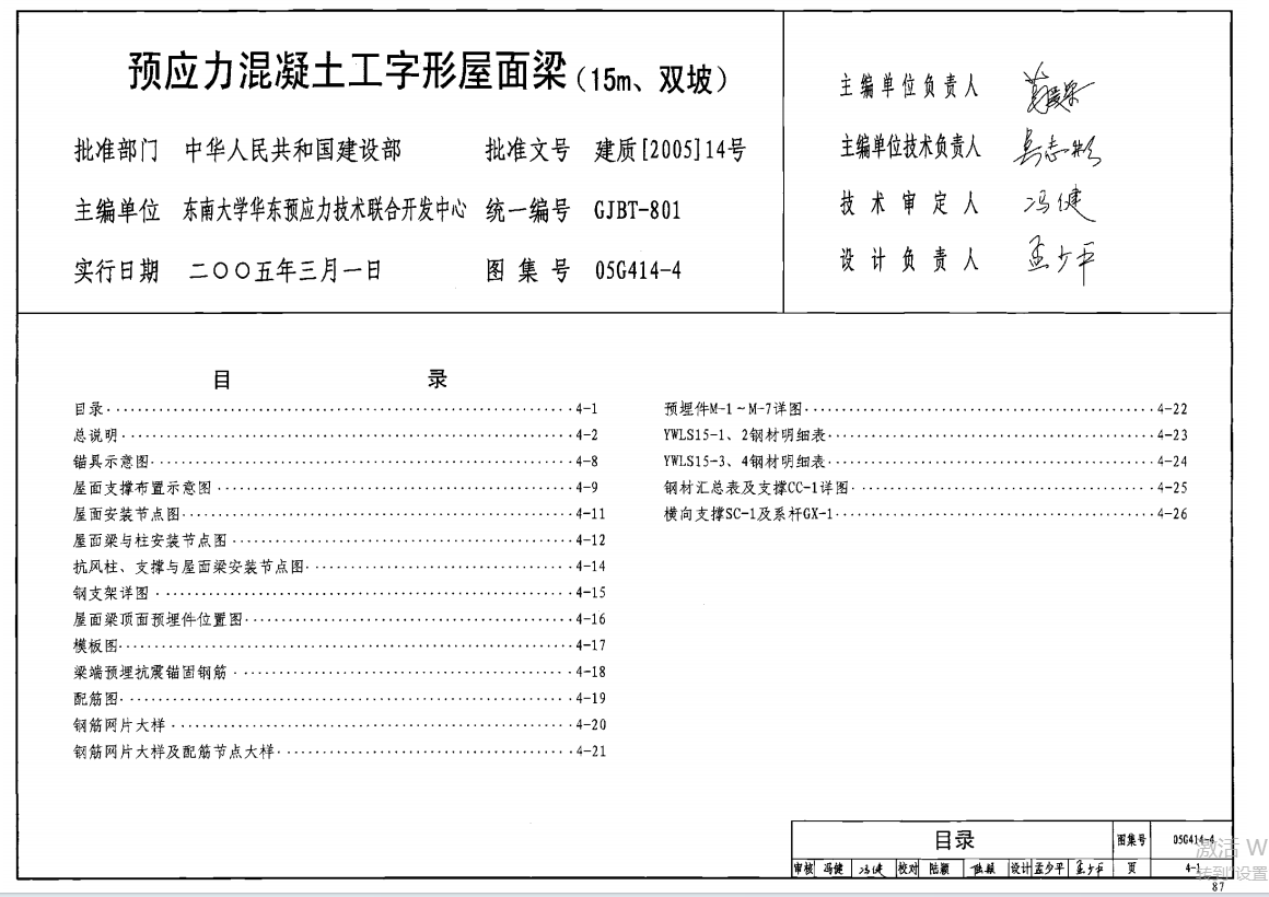 05G414-4预应力混凝土工字形屋面梁(15m、双坡)(点击下载文件)