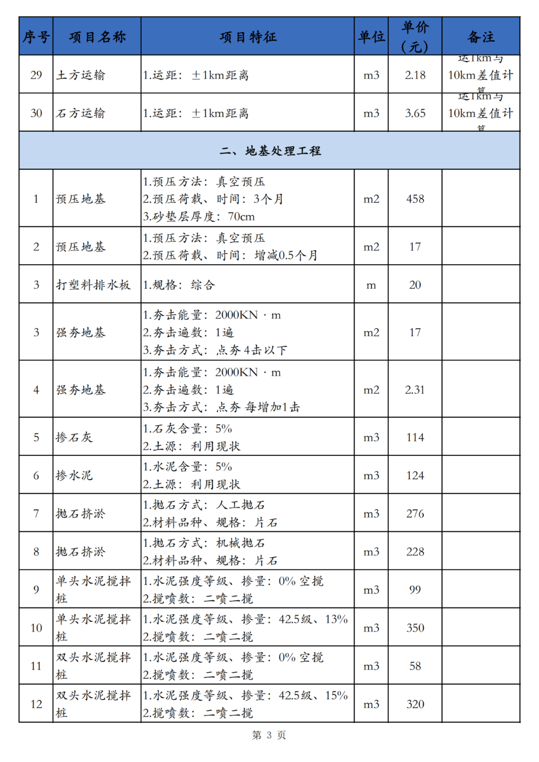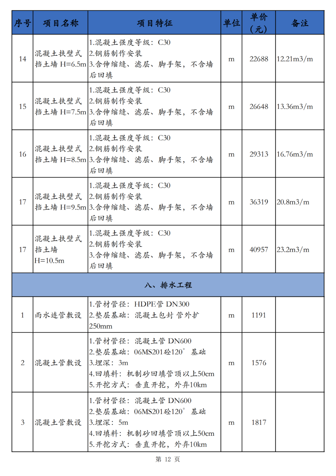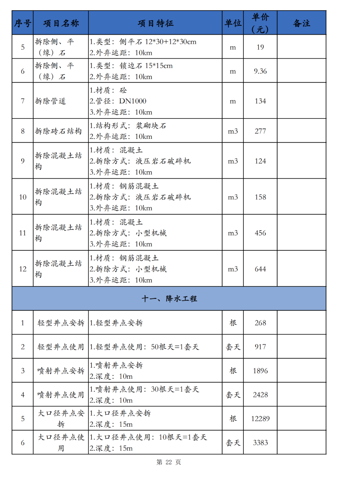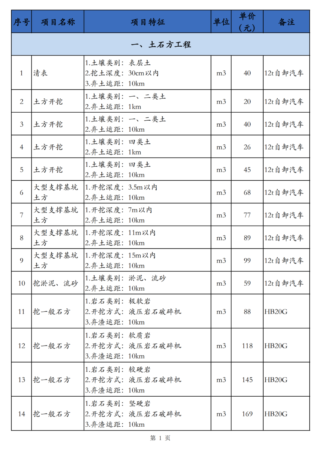 本技术经济指标包括土石方工程、地基处理、道路基层、道路面层、人行道及其他、桩基及围护工程、防护工程、排水工程、给中水工程、拆除工程、降水工程、电气工程共计12个小节,适用于海南省海口市相应建设内容的指标参考。