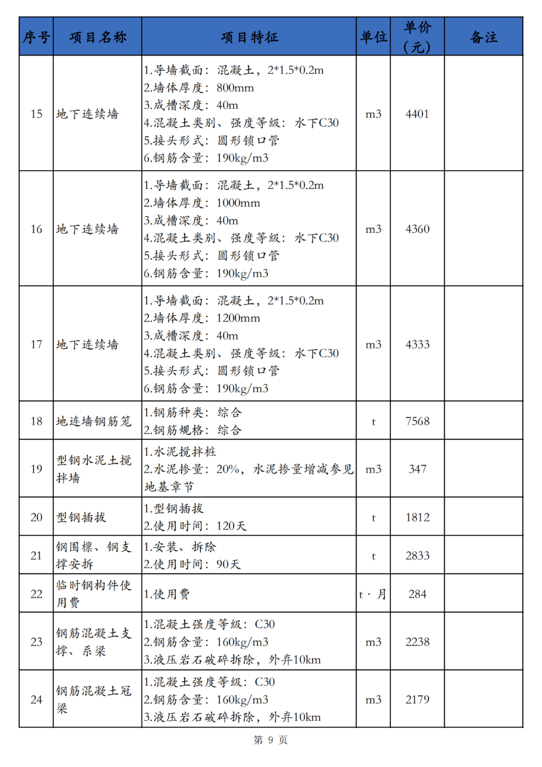 3.本技术经济参考指标所涉及的钢筋含量均为暂定,实际情况与其不符可参照相应的钢筋指标自行调整;