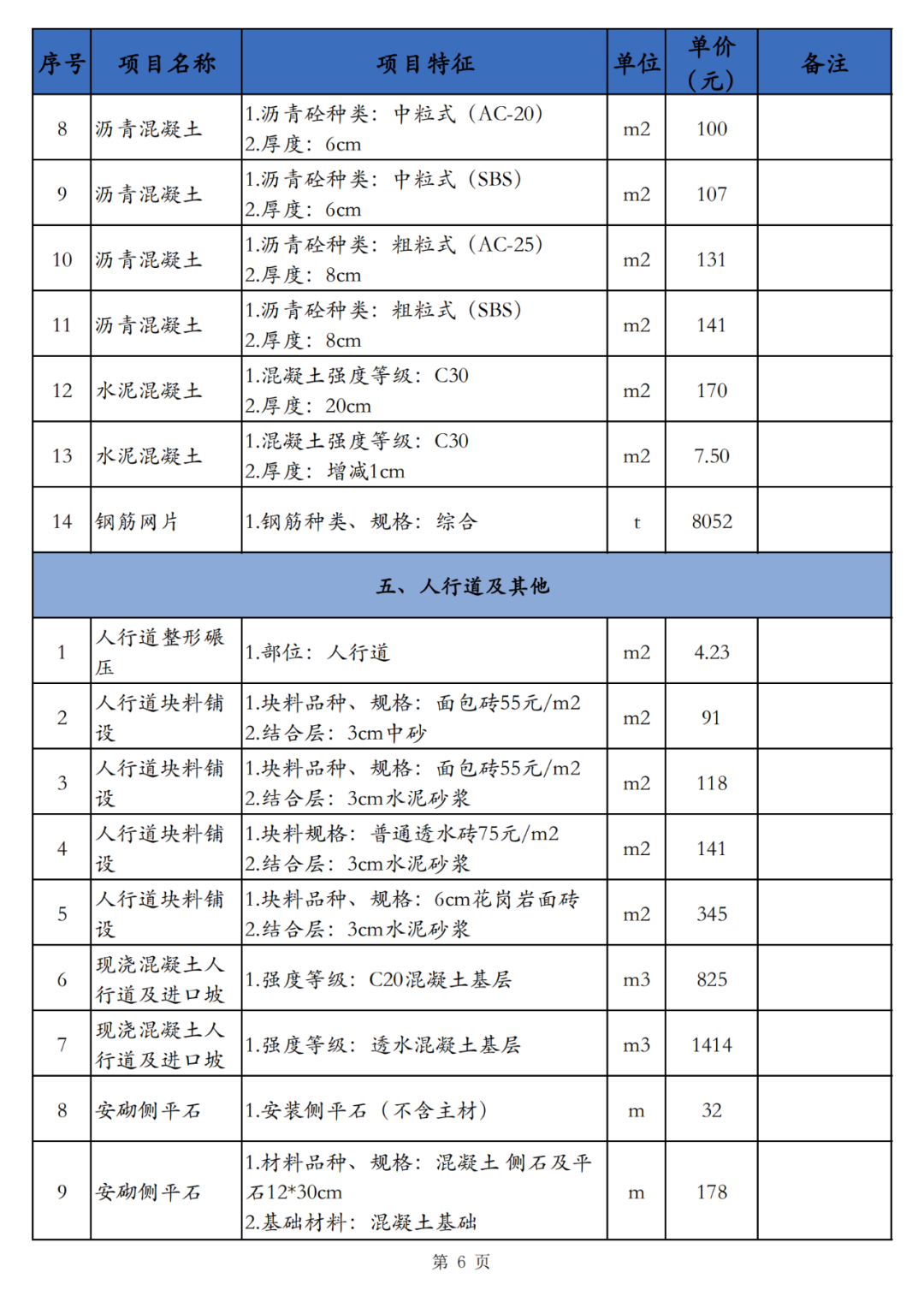 6.材料价格采用《海南工程造价信息》(海口市2023年第09月)及有关计价办法,无信息价的参考同期市场价。