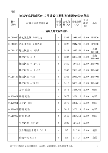滨州市工程造价管理信息2025年12月