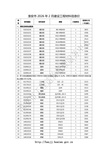 淮安市工程造价管理信息2026年2月