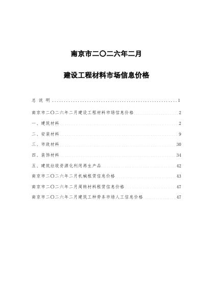 南京市工程造价管理信息2026年2月