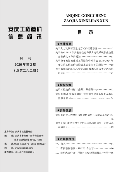 安庆市工程造价管理信息2026年2月
