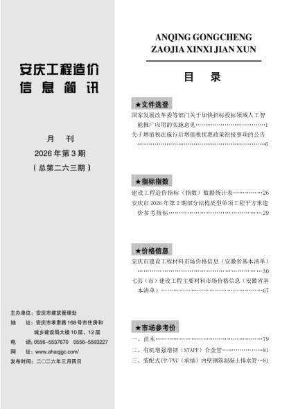 安庆市工程造价管理信息2026年3月